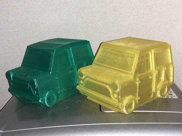 2つと言っても左側の方は途中でエラー起こし止まってしまったので、捨てようかと思ったのですが、ちょっと勿体無いので、止まった場所の寸法測ってその続きから別に作って貼り合わせました。