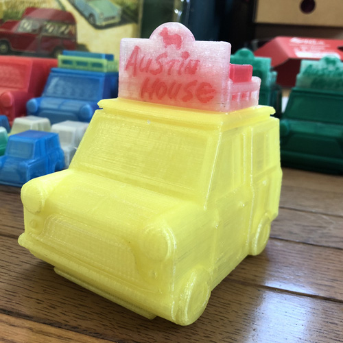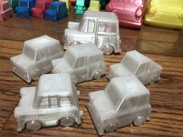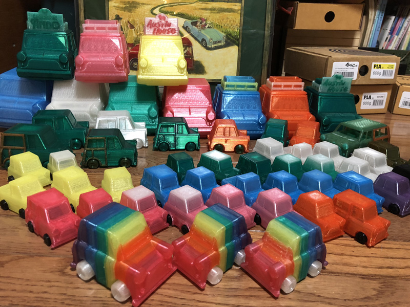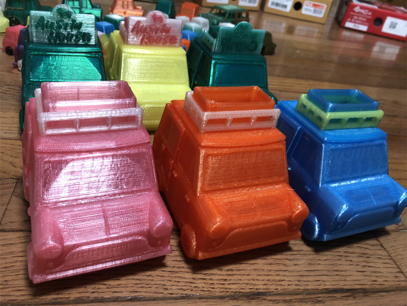同時に2色までしか使えないのでイエローとクリアの2色で作る予定だったのですが、屋根の部分ができたあたりでエラーばかりでて、黄色い屋根ばかり3個も・・・