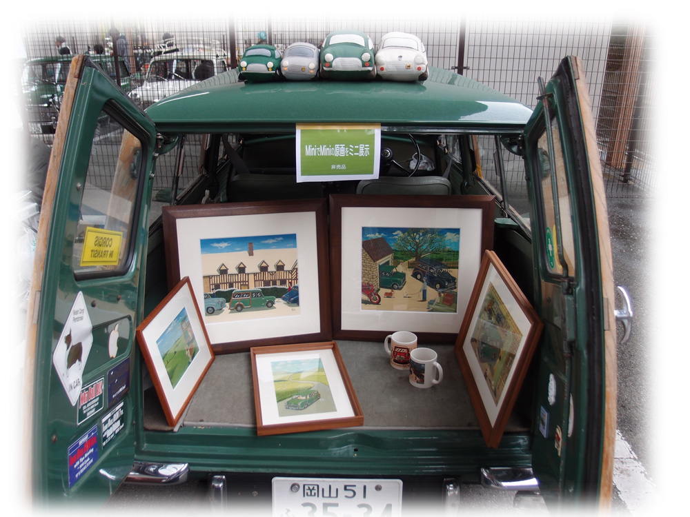 カレンダーの宣伝?のために、持ってる原画の展示をカントリーの荷台で