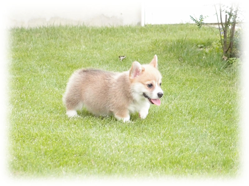 初めての外、初めての芝生、今までずっと兄弟と一緒にケージの中だったので、すべてに興味しんしん♪