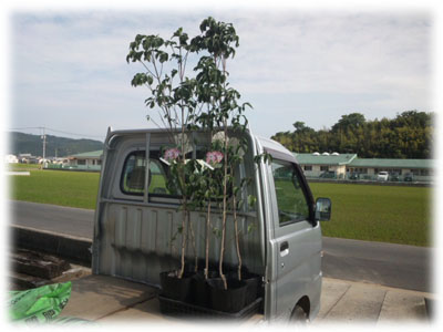 頼んでいたハナミズキの苗木?が届いたと先週から連絡をもらっていたので、取りにいってきました。