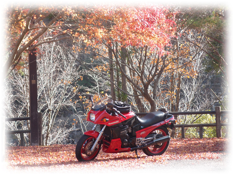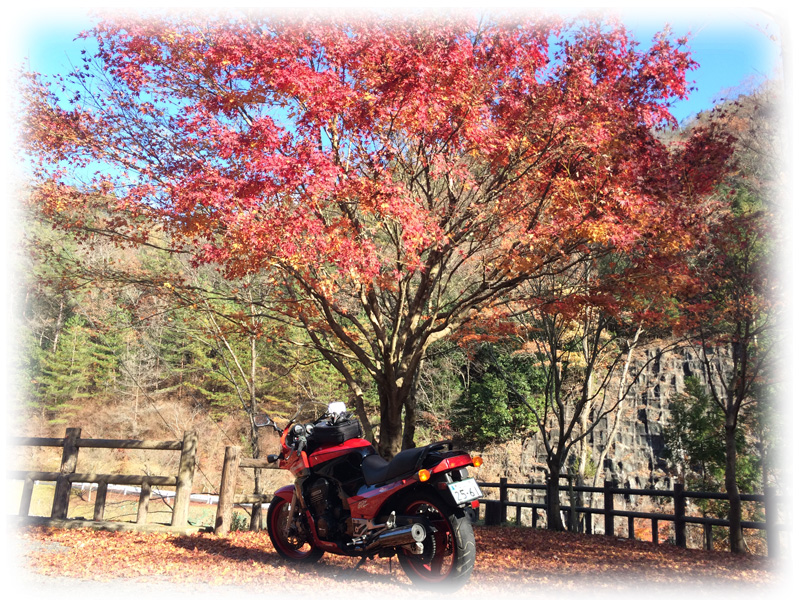 赤い紅葉に赤いバイク........