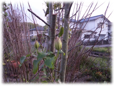 側に植えていたクレマチスが枯れてしまった木蓮に絡みながら今年はよく伸びてたくさんの蕾をつけてくれました