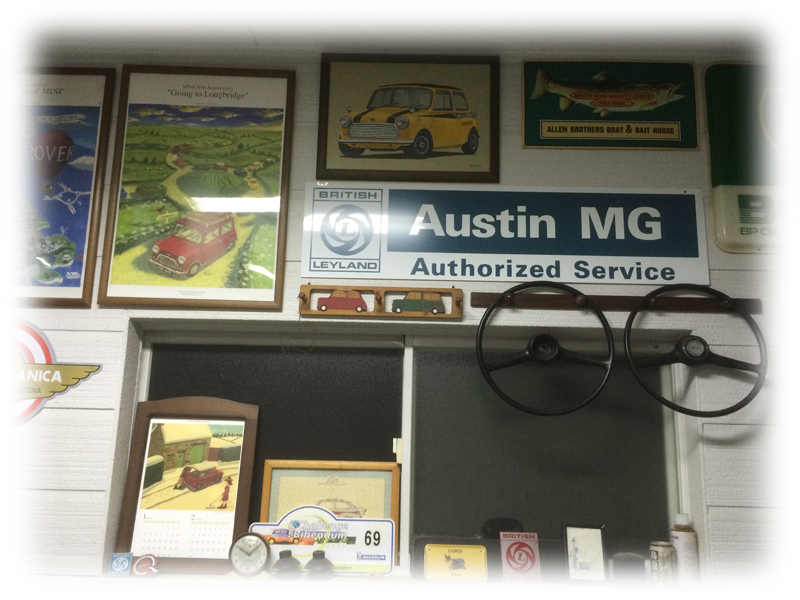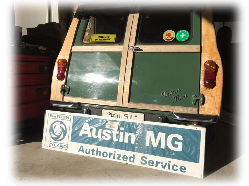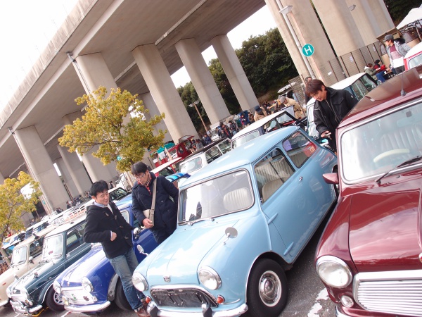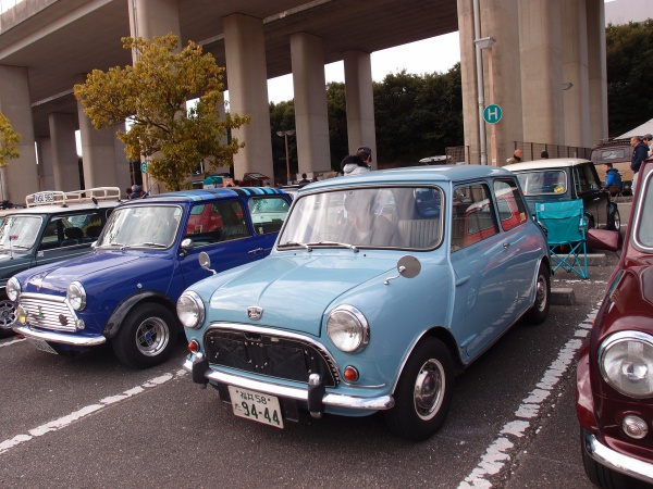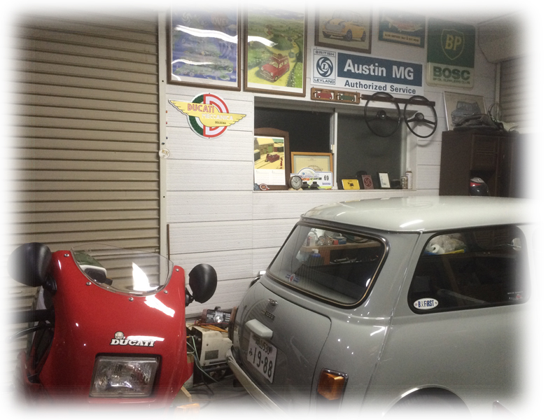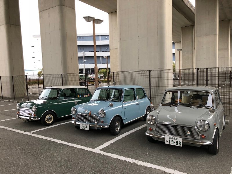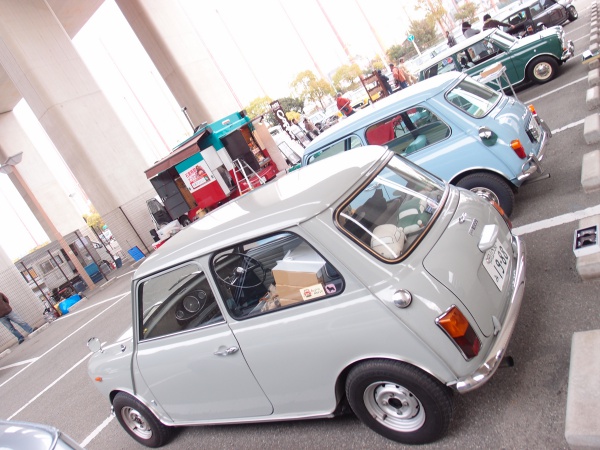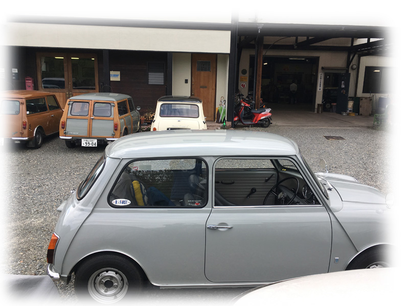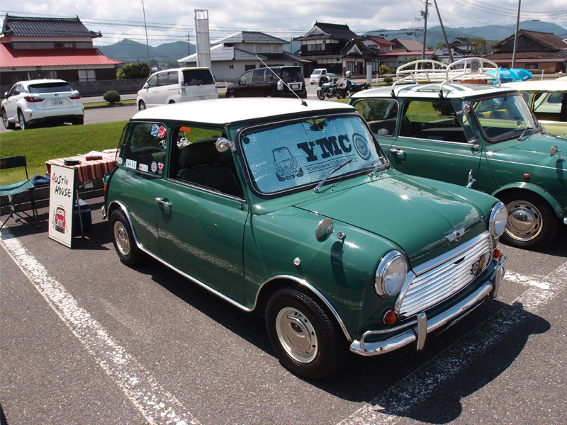 Miniの屋根に落ちた花びらと