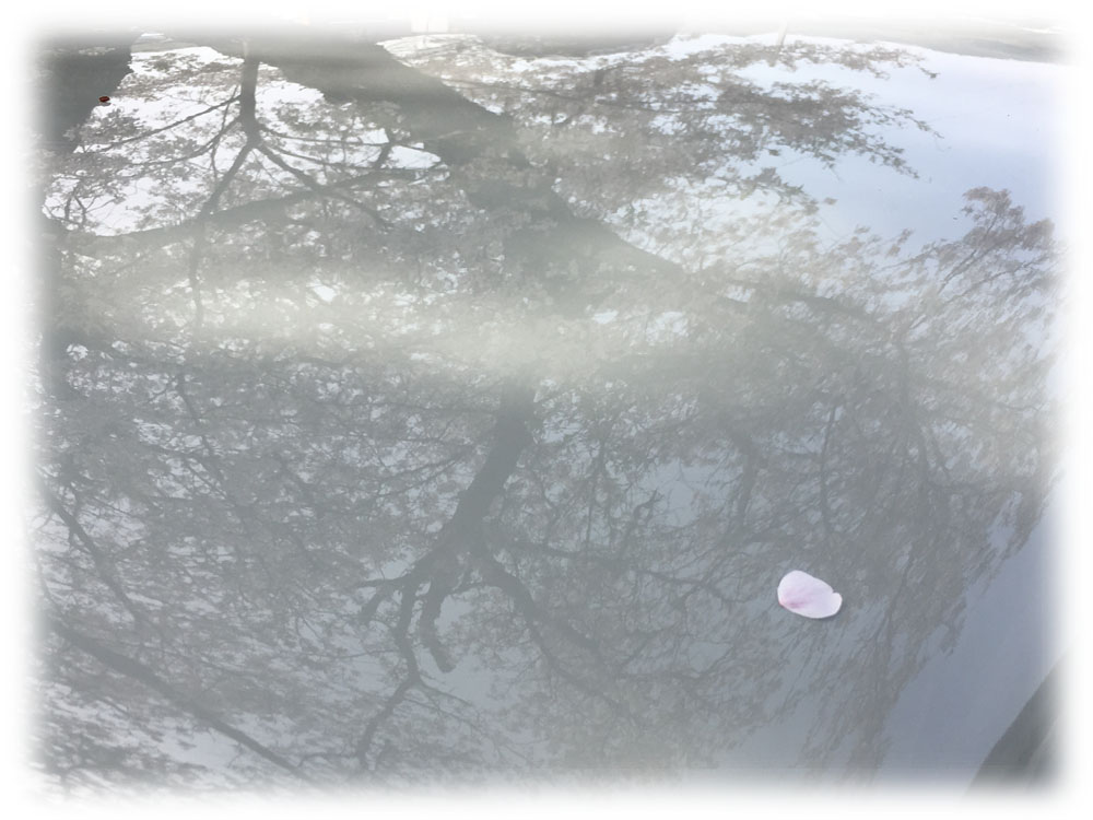 屋根に写り込んだ桜の枝々がいい感じでした