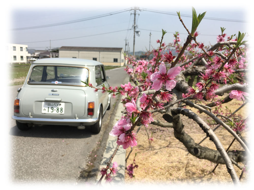 帰り道、山陽町ではあちらこちらに桃の花が