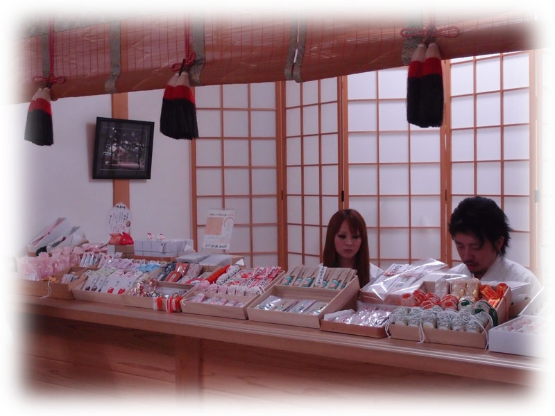 隣の建物の中に入って販売していたお守りとか白兎の鈴とか見ていたら.......